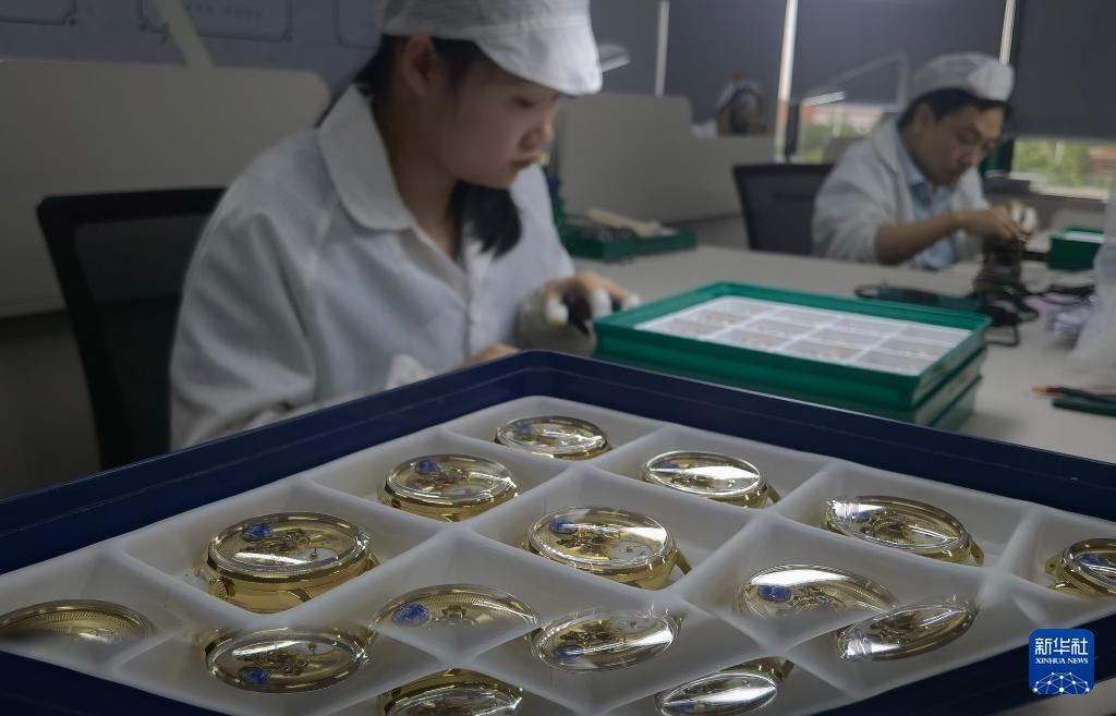 5月17日在“船山时间谷”一家手表企业拍摄的手表机芯生产。