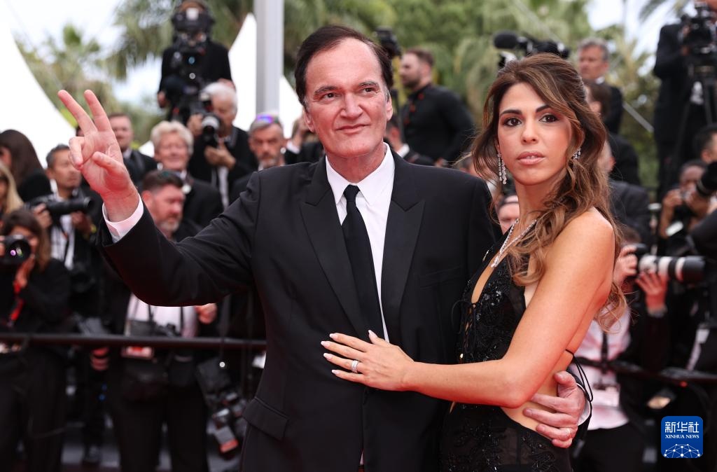 5月17日,在法国戛纳举行的第78届戛纳国际电影节上,美国导演昆汀·塔伦蒂诺(左)和妻子亮相主竞赛单元影片《新浪潮》首映礼。