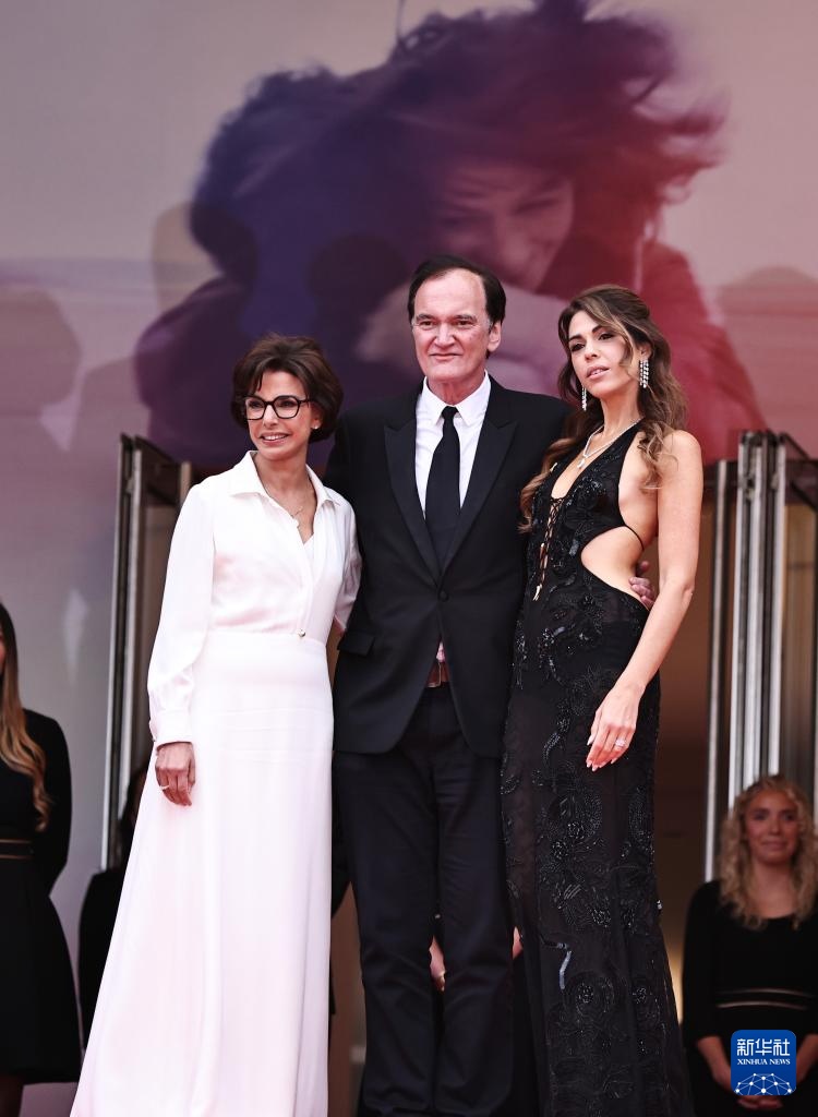 5月17日,在法国戛纳举行的第78届戛纳国际电影节上,法国文化部长达蒂(左)和美国导演昆汀·塔伦蒂诺(中)及其妻子亮相主竞赛单元影片《新浪潮》首映礼。