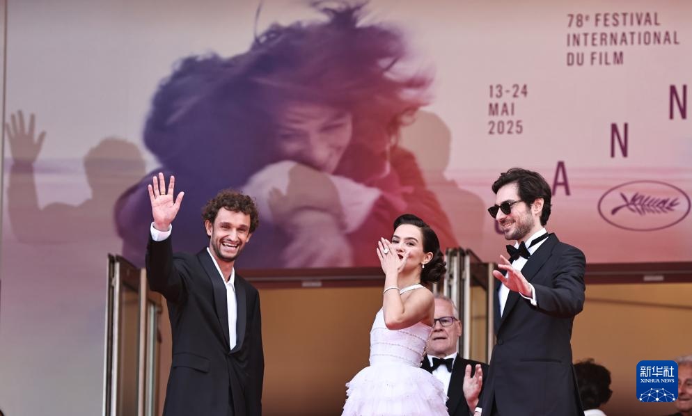 5月17日,在法国戛纳举行的第78届戛纳国际电影节上,主竞赛单元影片《新浪潮》主创人员亮相首映礼。