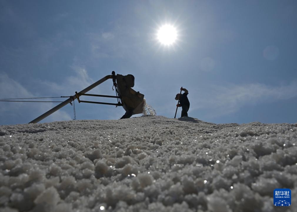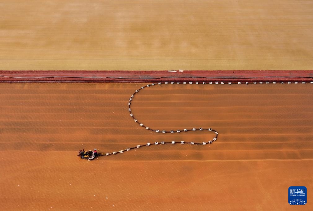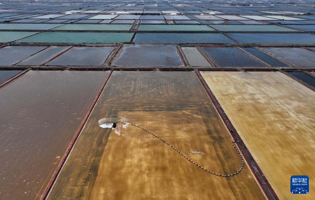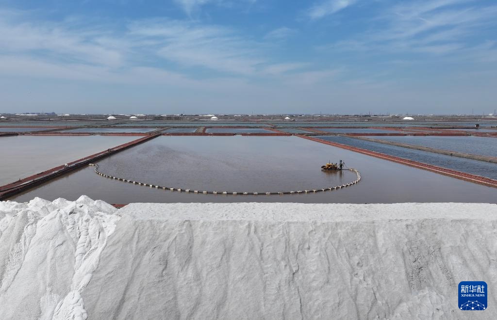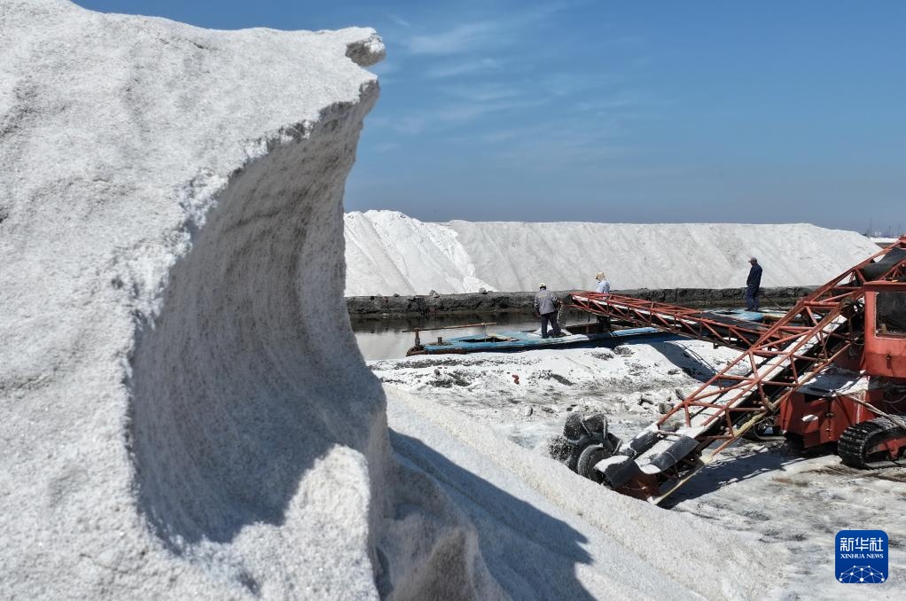 近日,河北省唐山市曹妃甸区南堡盐场的35万亩盐田迎来春盐收获期,工人利用晴好天气加紧收获,盐田里到处是繁忙工作景象。据介绍,南堡盐场是我国长芦盐区海盐生产基地之一,当地依托盐资源丰厚优势,大力发展盐化工产业,助推经济发展。
