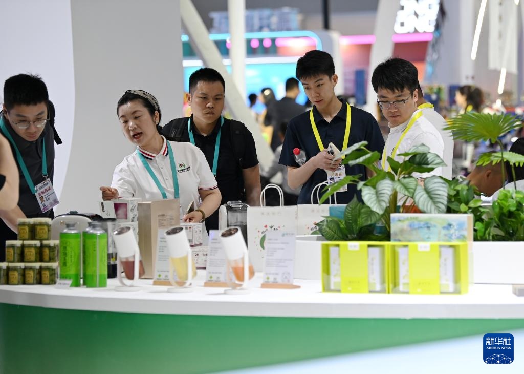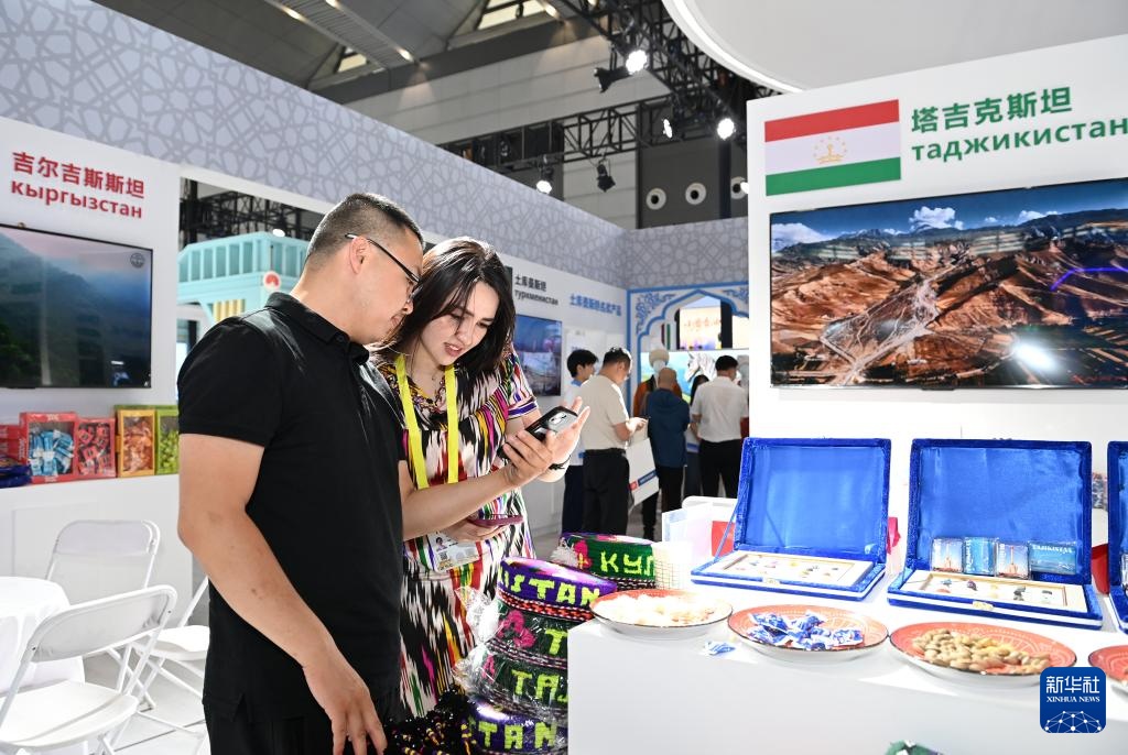 5月21日,在第九届丝绸之路国际博览会暨中国东西部合作与投资贸易洽谈会丝路优品展上,参观者了解塔吉克斯坦商品。