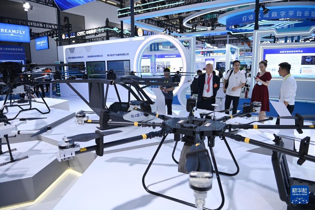 5月21日,在第九届丝绸之路国际博览会暨中国东西部合作与投资贸易洽谈会低空经济展上,参观者了解各类飞行器。