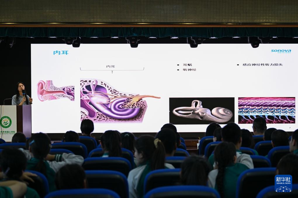 5月21日,在乌鲁木齐市聋人学校,专家在活动上为听障学生开展科普讲座。