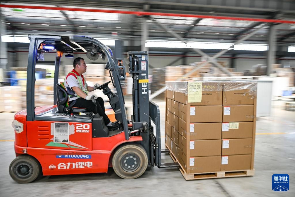 5月21日,在位于重庆永川综合保税区的长城汽车KD工厂,工作人员在运送即将出口的汽车零部件。