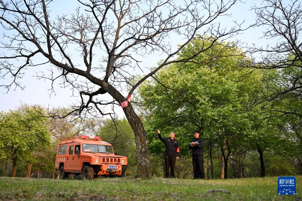 5月20日,在内蒙古呼伦贝尔扎兰屯市白毛沟林场,护林员刘巴图使用无人机对一处国家二级保护植物黄檗的野外栖息地进行巡查。