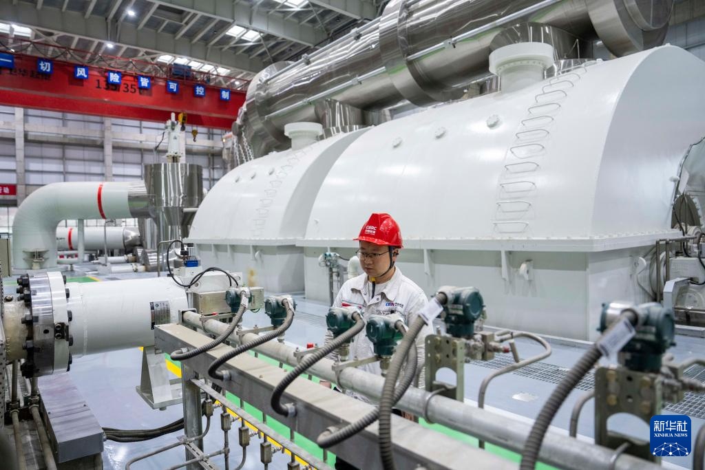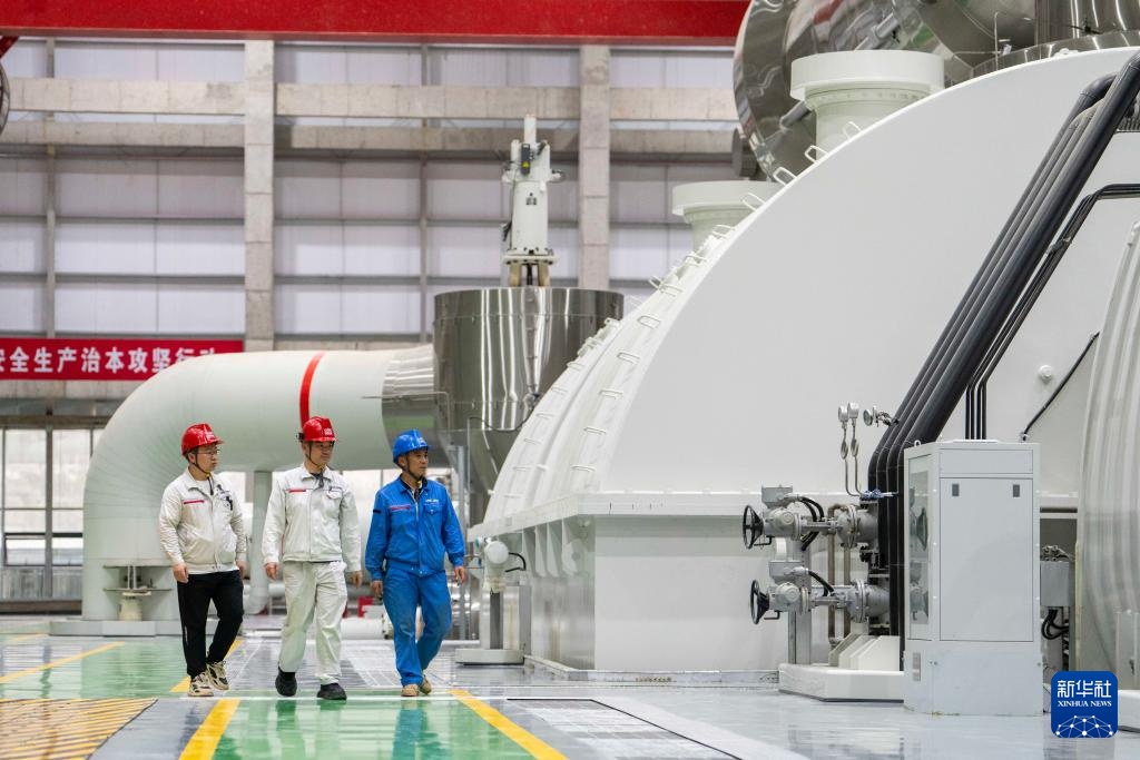 5月22日,长安益阳电厂工作人员巡检发电设备。