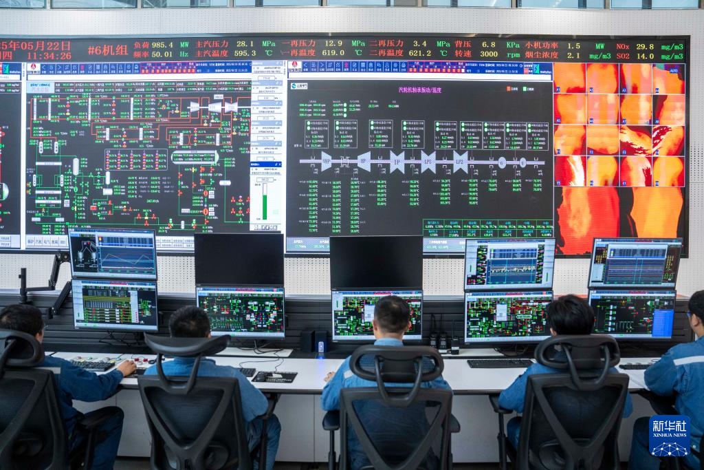 5月22日,长安益阳电厂工作人员监控发电设备运行情况。