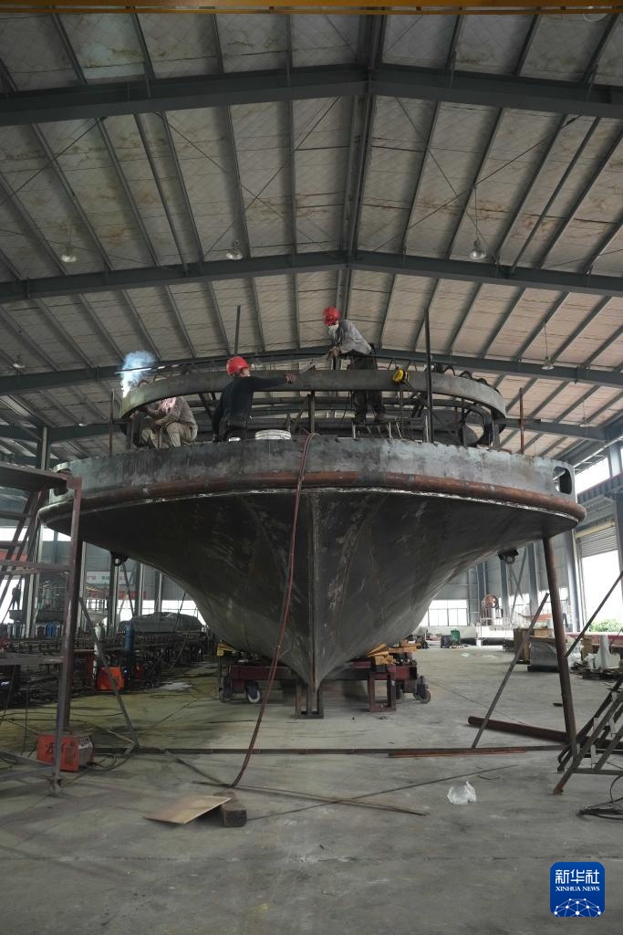 5月22日,工人在位于沅江市的湖南金航船舶制造有限公司生产船舶。