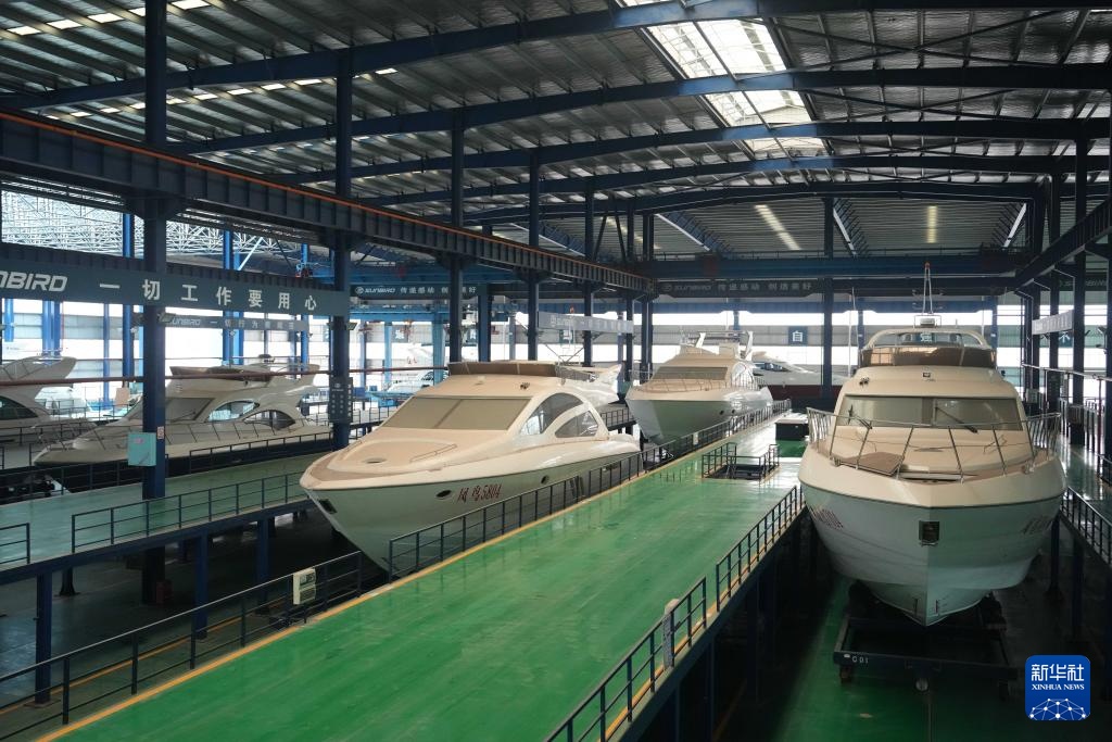 5月22日在位于沅江市的亚光科技集团股份有限公司拍摄的游艇。