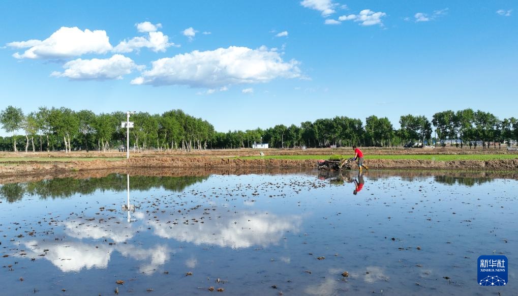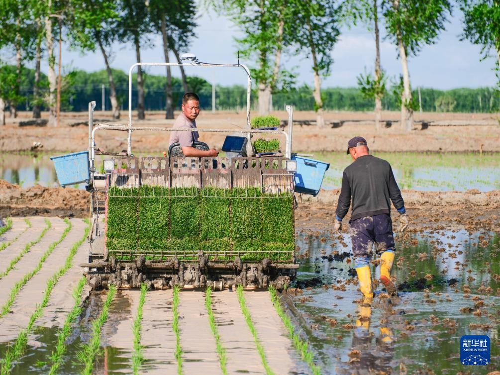 内蒙古兴安盟扎赉特旗正值水稻插秧季,当地农民应用卫星导航、纸膜插秧等现代农业技术,紧抓农时,田间一派繁忙景象。