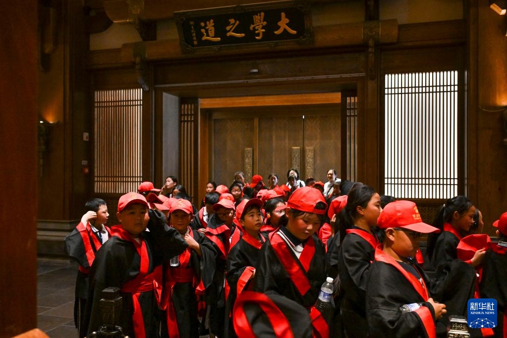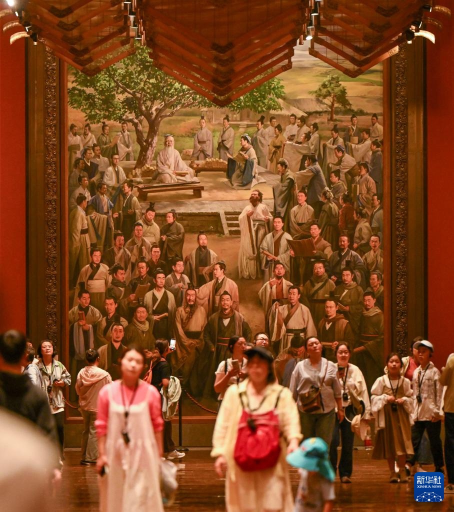 如今,曲阜围绕尼山打造儒学文化体验项目,迎接八方游客,也吸引众多学生前来研学。在大学堂拾级而上、在七十二贤廊与历史对话、在仁厅临摹经典、在剧场观看礼乐盛典……来到尼山,人们通过沉浸式体验,感悟儒家思想的精髓。