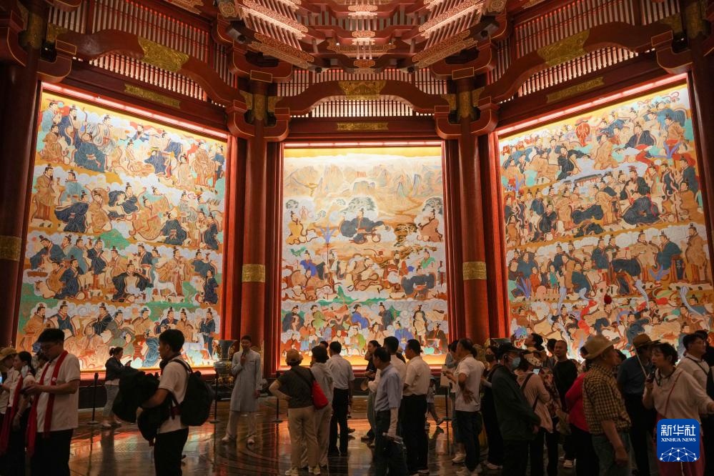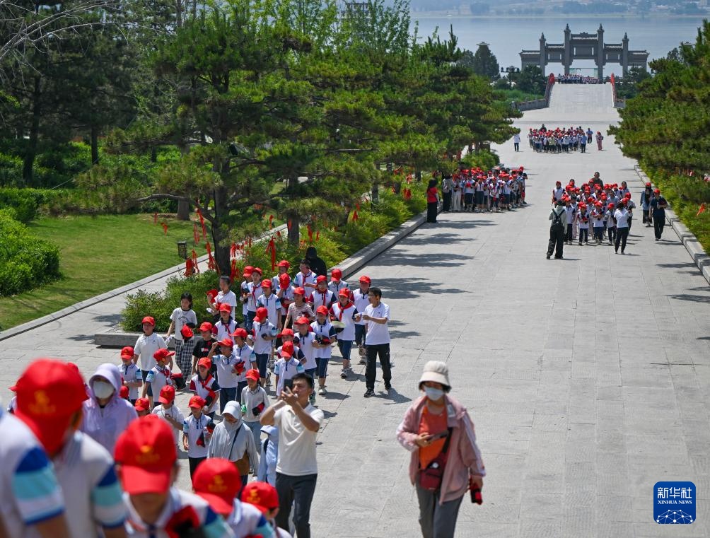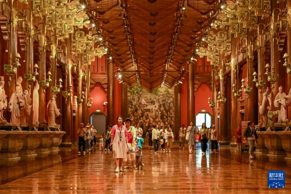 游客在尼山圣境景区七十二贤廊参观(5月21日摄)。