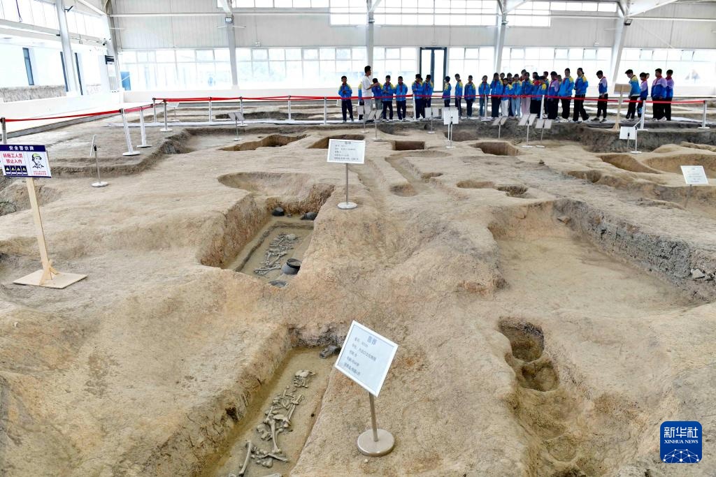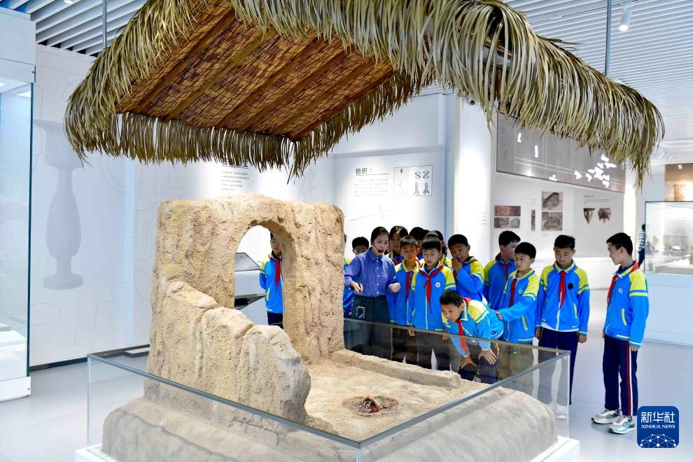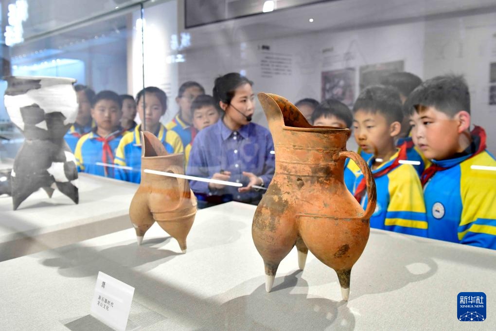 5月23日,日照市岚山区高兴镇的学生在位于岚山区的尧王城考古遗址公园参观考古成果展。
