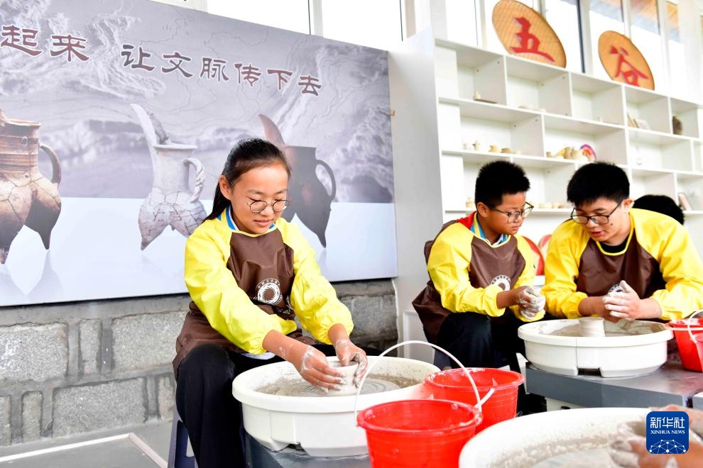 5月23日,日照市岚山区高兴镇的学生在位于岚山区的尧王城考古遗址公园体验陶艺制作。