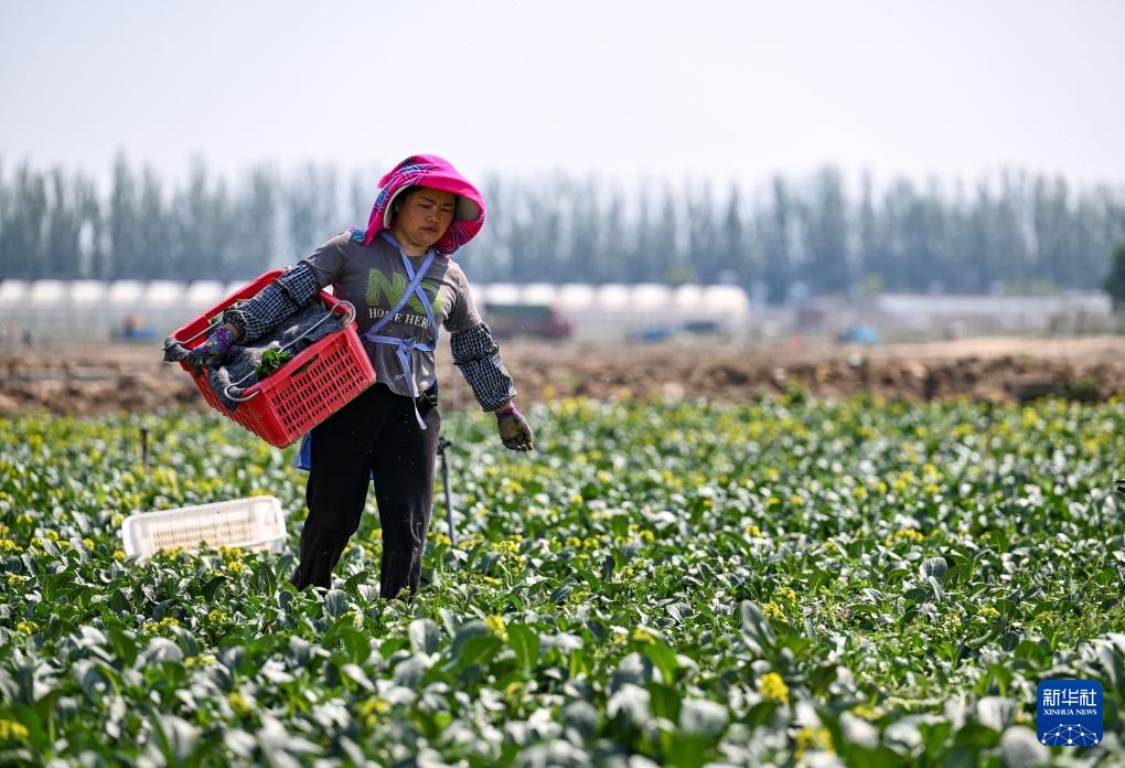 5月23日,工人在位于贺兰县习岗镇的鲜丰农业冷凉蔬菜种植基地收获菜心。