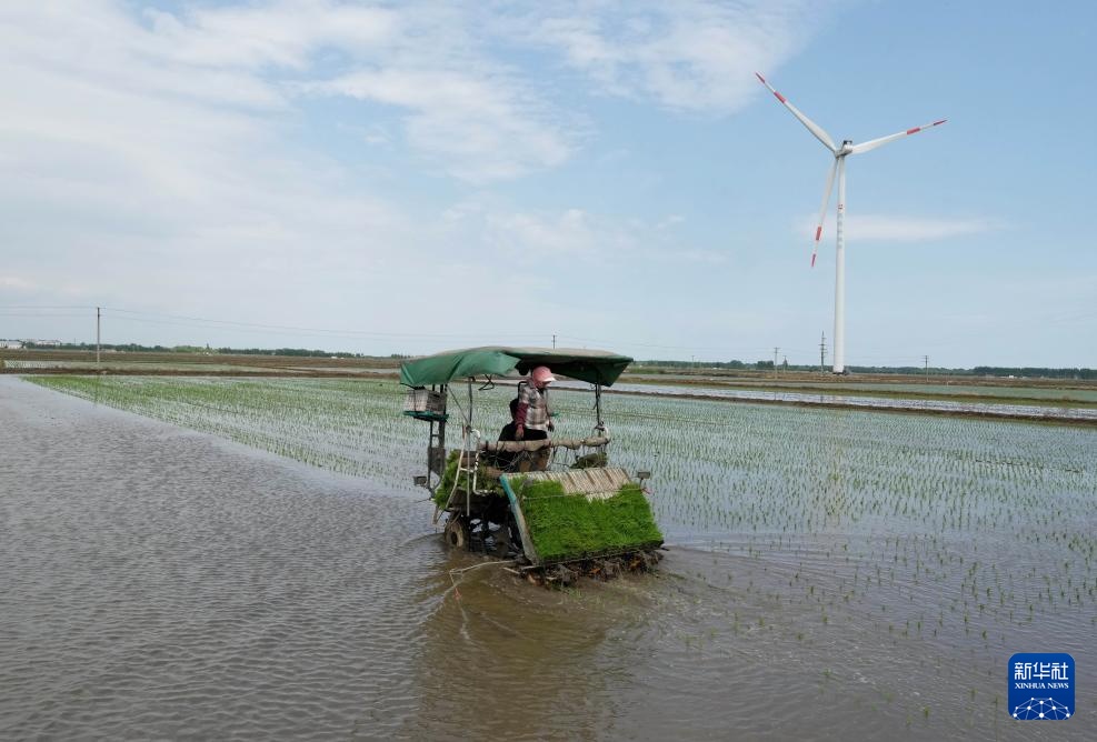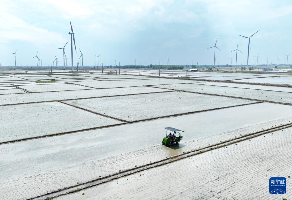 近日,河北省秦皇岛市的农民开始适时进行水稻插秧,广袤的大地上呈现出一幅幅如诗如画的田园画卷。