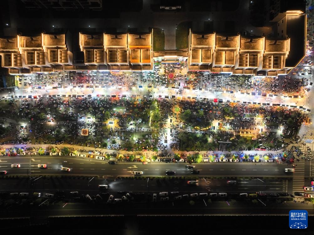 这是梧州市水云天夜市(无人机照片,5月1日摄)。