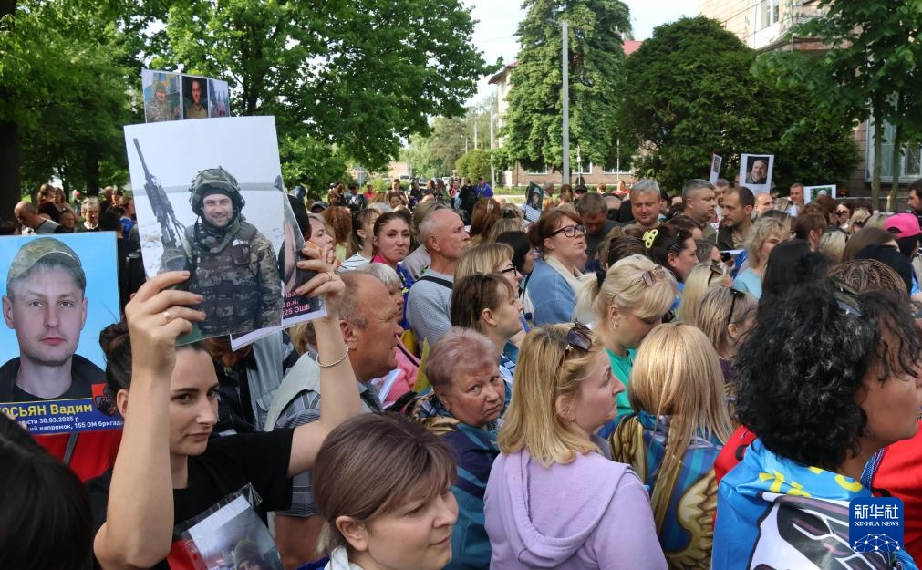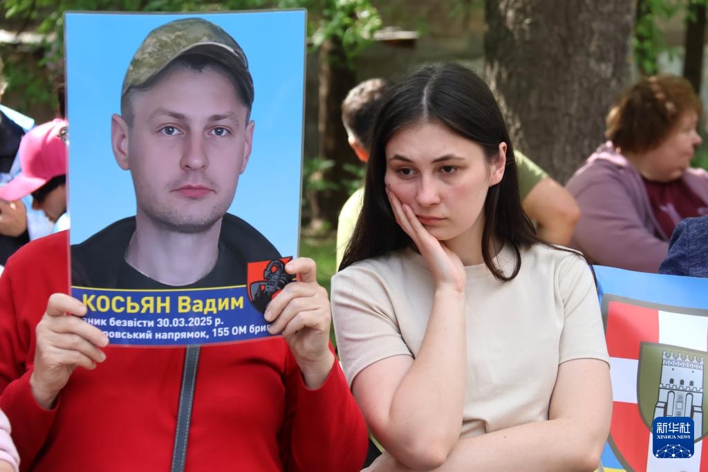 5月23日,乌克兰民众举着失踪军人的照片寻求帮助。