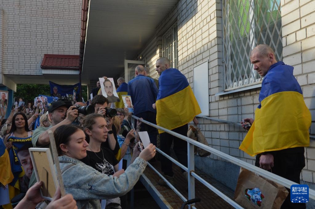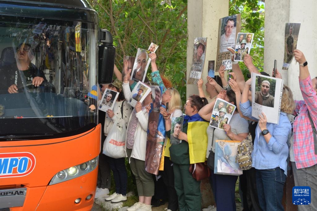 5月23日,被释放的乌方人员乘坐大巴返回乌克兰境内。