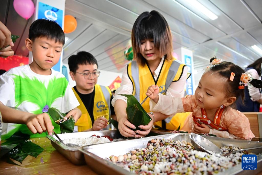 当日,中铁建工青岛上合大厦项目部举行“童心同行 粽享端午”亲子家庭日活动,邀请职工家属及子女一起包粽子、做龙舟,开展互动趣味游戏,了解中华传统习俗,增进亲子关系。