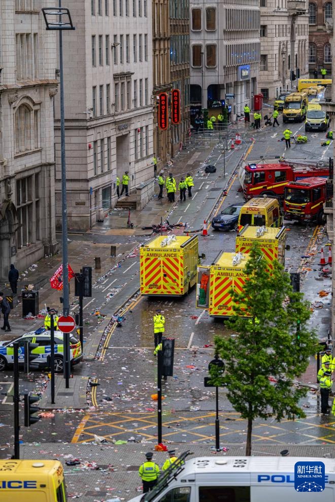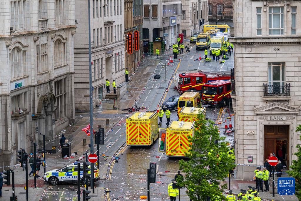 5月26日,警察和应急人员在英国利物浦的驾车撞人事件现场工作。