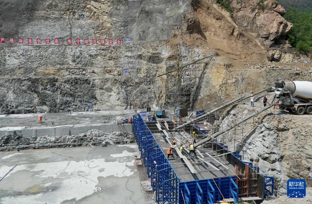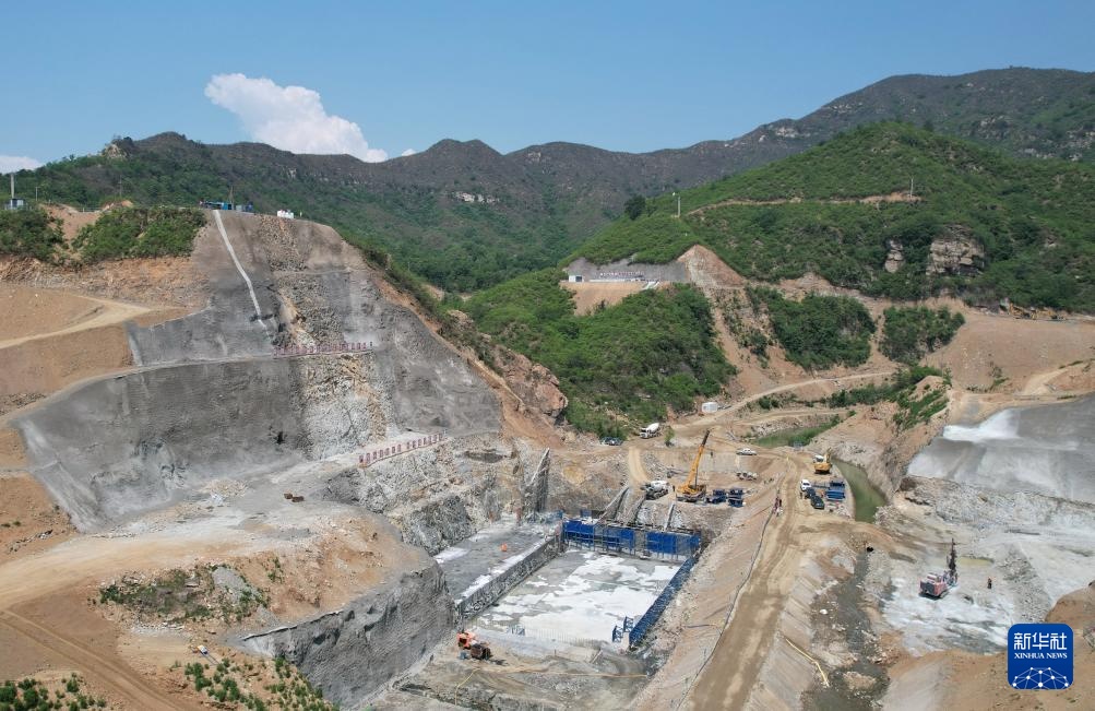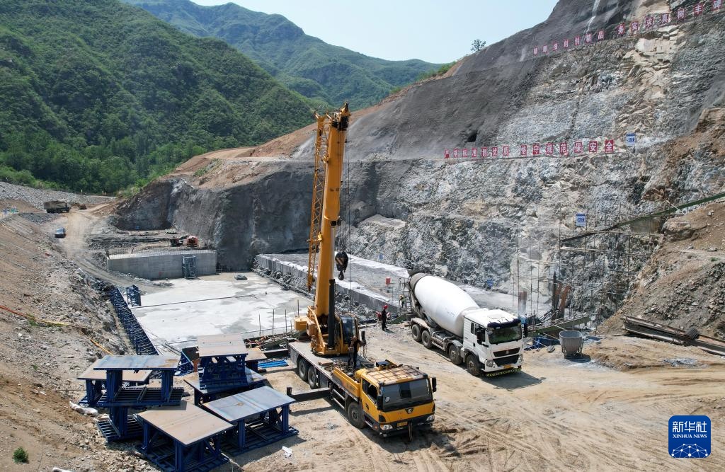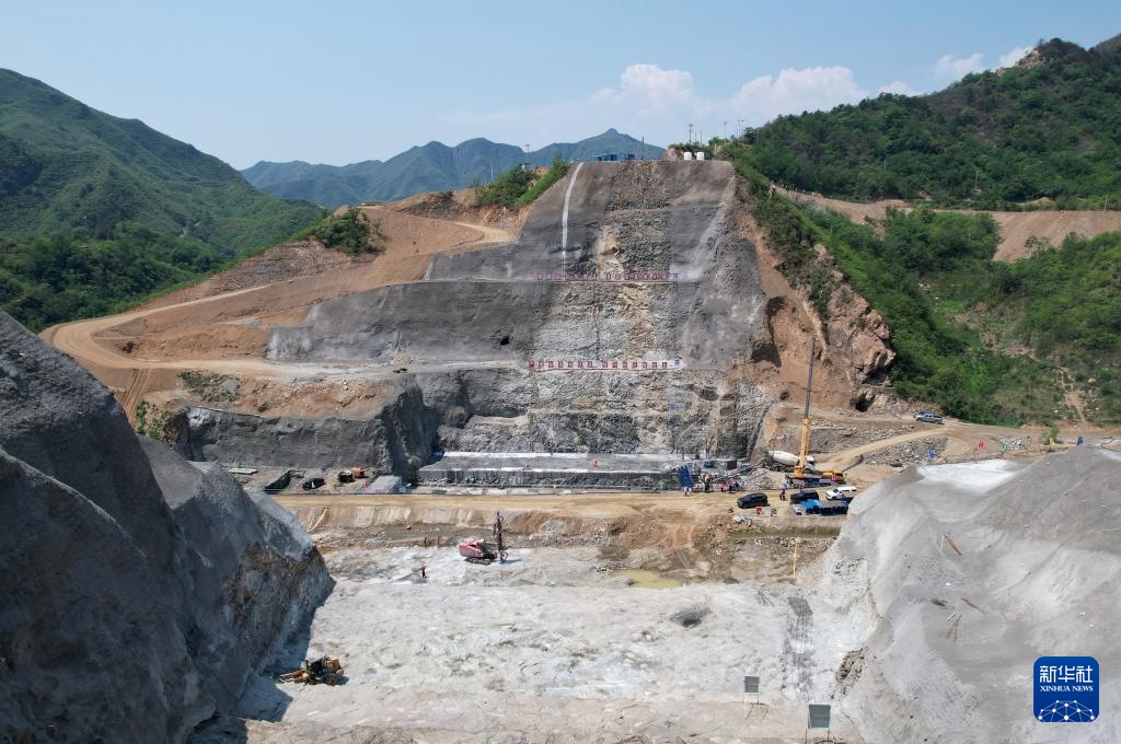 5月27日,中铁十八局集团的工人在石漕沟水库枢纽工程建设工地施工。