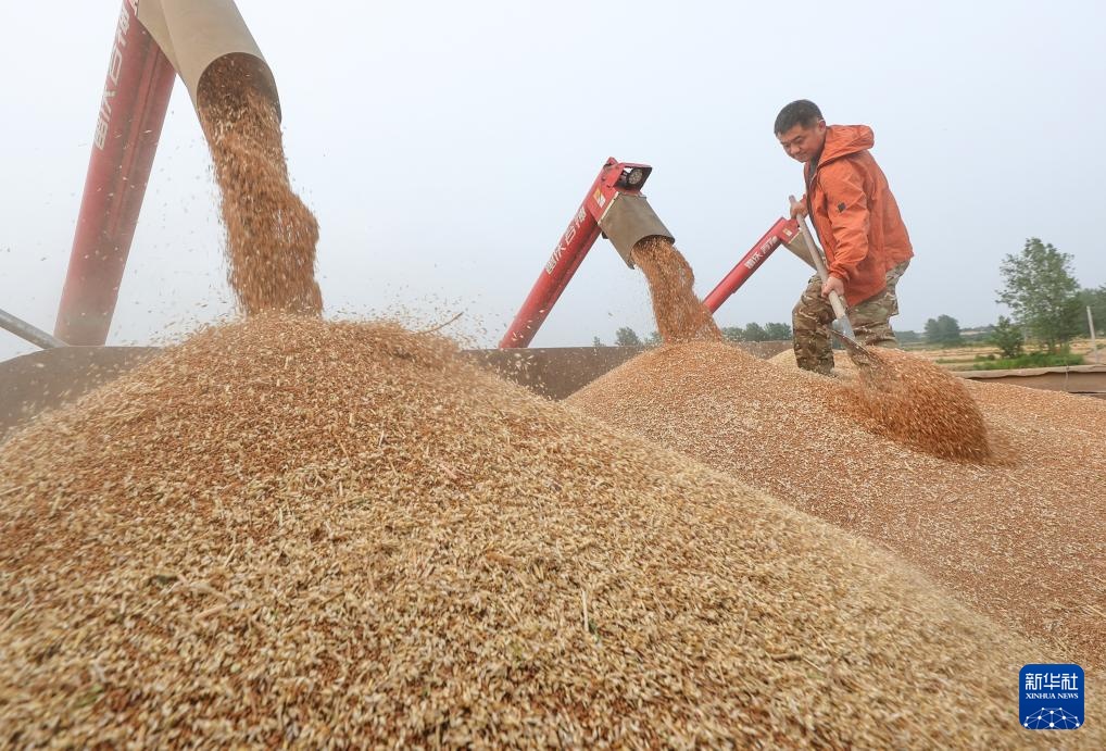 5月27日,盱眙县种粮大户刘凯在田间装运收获的小麦。