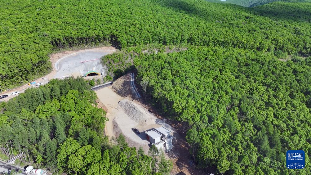 这是5月27日拍摄的滨绥铁路绥芬河至国境线扩能改造工程新建绥芬河隧道进口(无人机照片)。