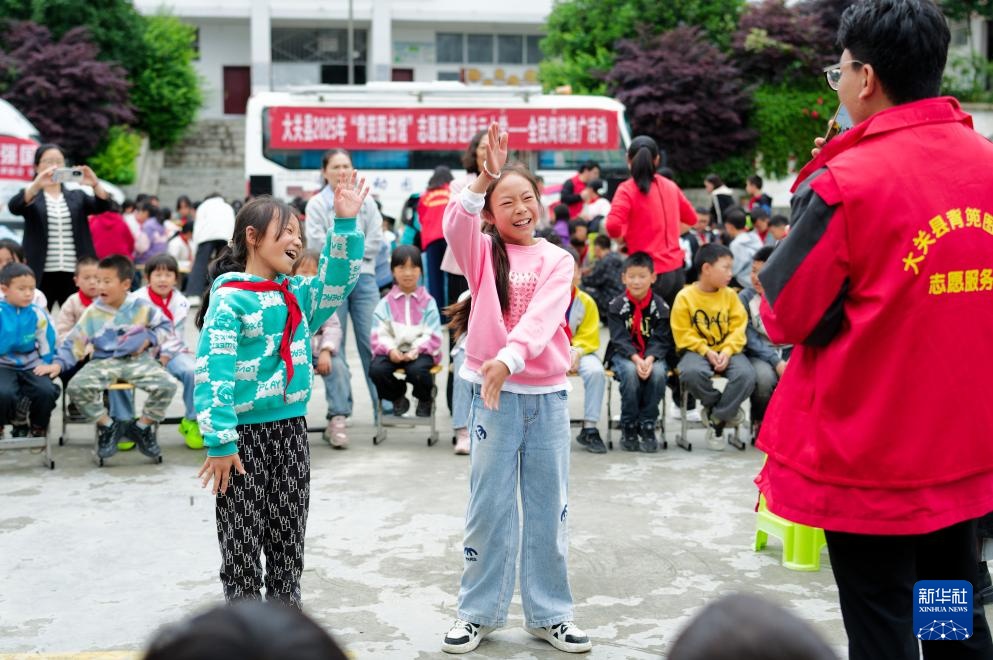 5月28日,昭通市大关县翠华镇庆云小学的学生们在游戏环节表演舞蹈。
