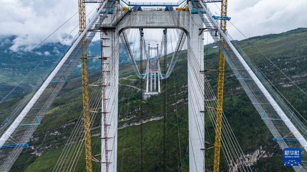 眼下,由中铁广州局承建的贵州安(安顺)盘(盘州)高速天门特大桥正抢抓工期,加紧建设,有序推进边跨索夹安装。