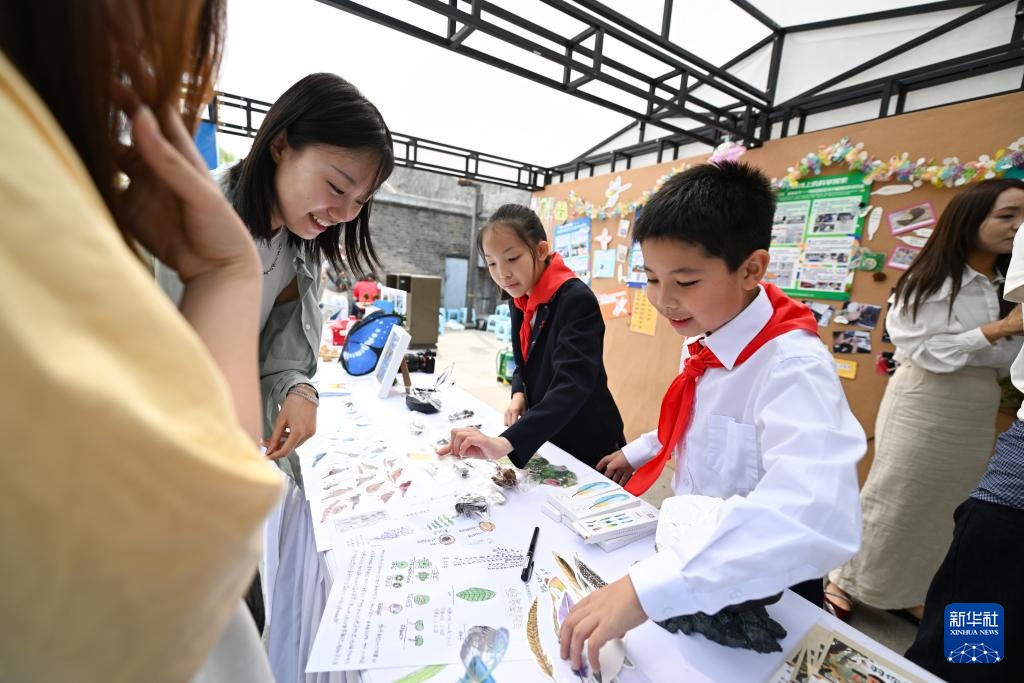5月29日,北京市东城区黑芝麻胡同小学生命“芝”光社团成员在活动中向游人讲解。