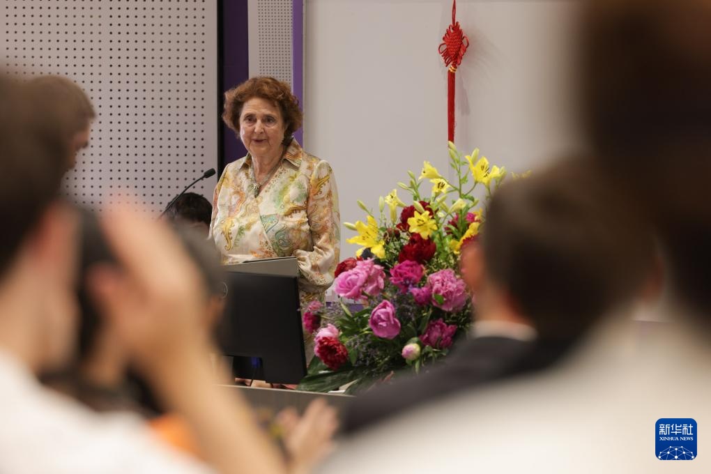 5月28日,在斯洛文尼亚首都卢布尔雅那,卢布尔雅那大学孔子学院斯方院长达妮耶拉·沃利奇在卢布尔雅那大学孔子学院成立15周年庆祝活动上致辞。