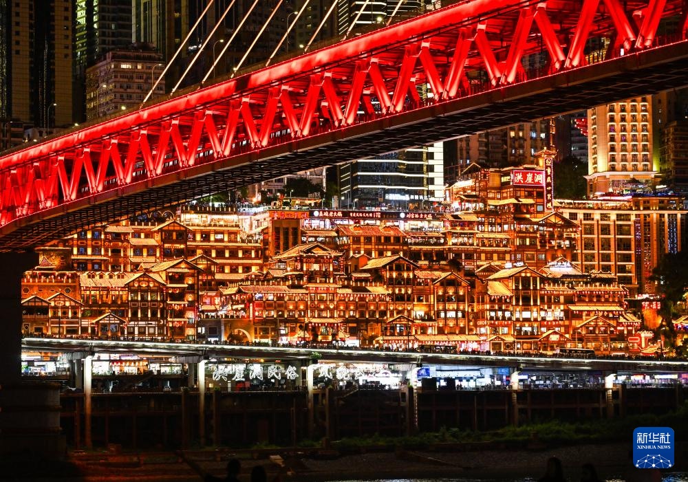 重庆洪崖洞位于嘉陵江边千厮门大桥旁,仿巴渝传统建筑吊脚楼依山而建。每当夜幕降临,洪崖洞依山临水的吊脚楼灯火辉煌,美轮美奂,成为游客打卡、游览的热门景点。