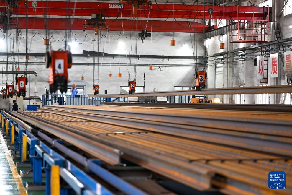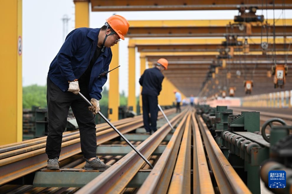 5月30日,工作人员在内蒙古呼和浩特市中国铁路呼和浩特局集团有限公司焊轨段吊运待焊接的钢轨。