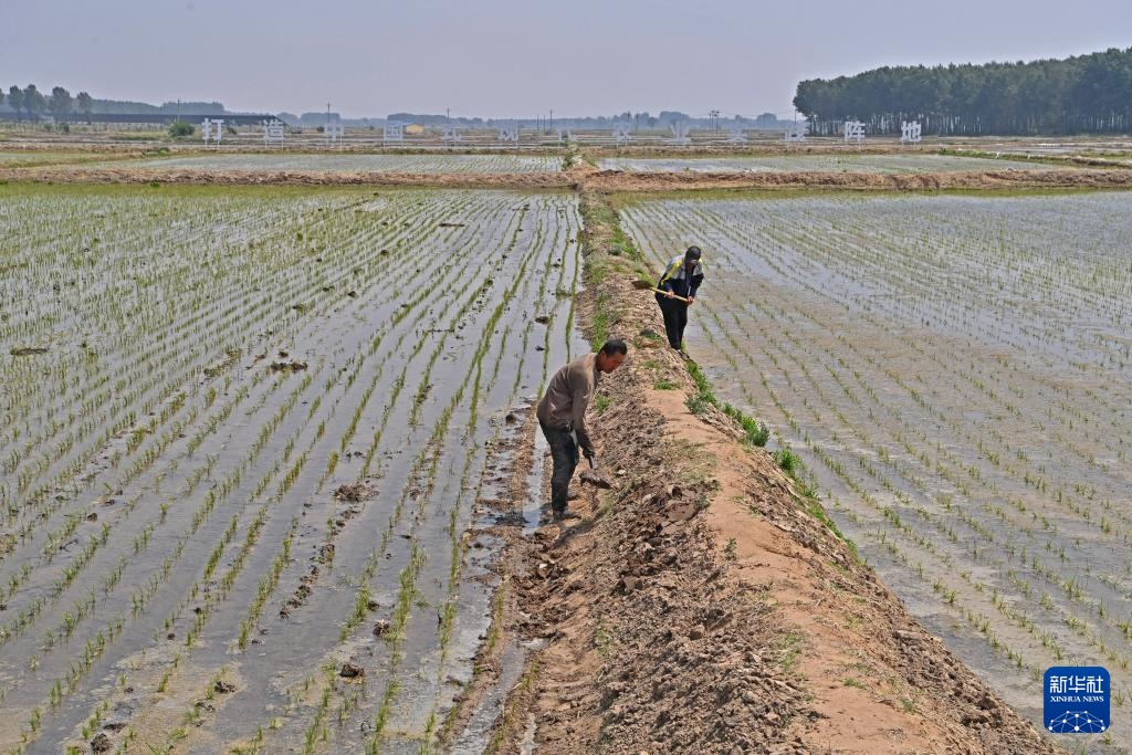 5月30日,农户在彰武县大冷镇柳河生态综合治理工程水田湿地项目进行日常维护。