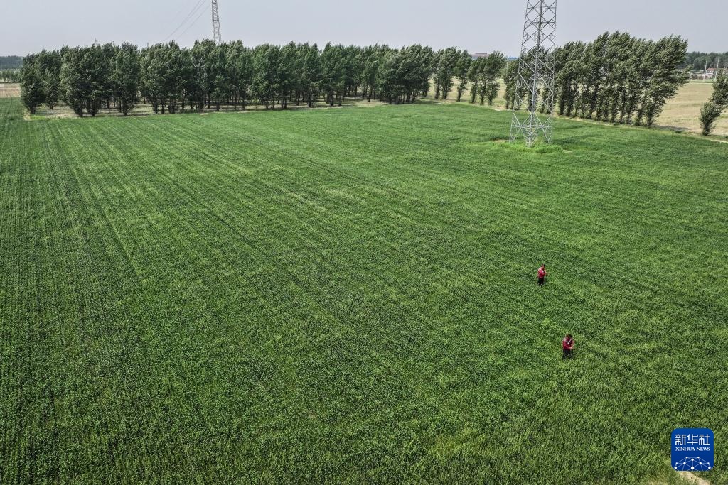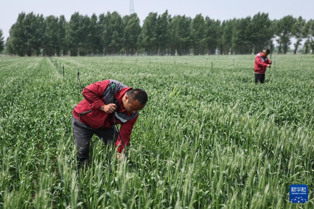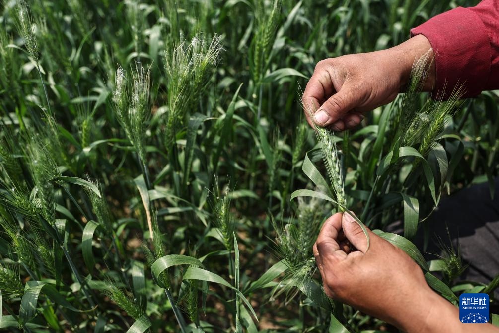 5月29日,农户在彰武县兴隆山镇麦豆轮作种植地块检查小麦生长情况。