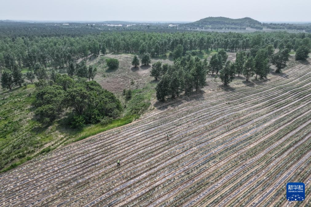 这是5月30日拍摄的彰武县五峰镇利用荒山荒地种植酸枣项目(无人机照片)。