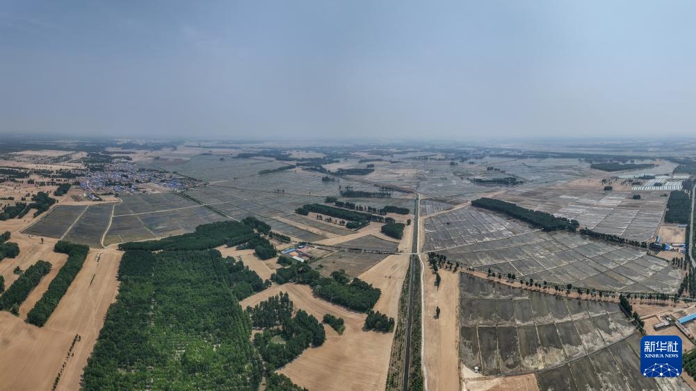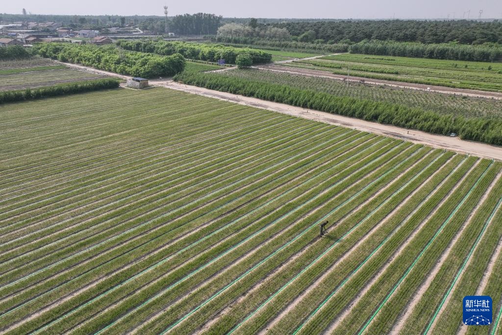 5月29日在辽宁省阜新市彰武县拍摄的辽宁省沙地治理与利用研究所育苗基地(无人机照片)。