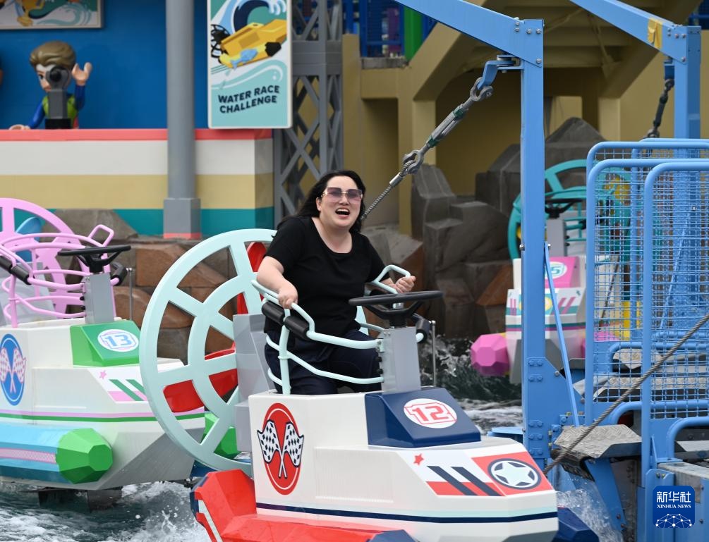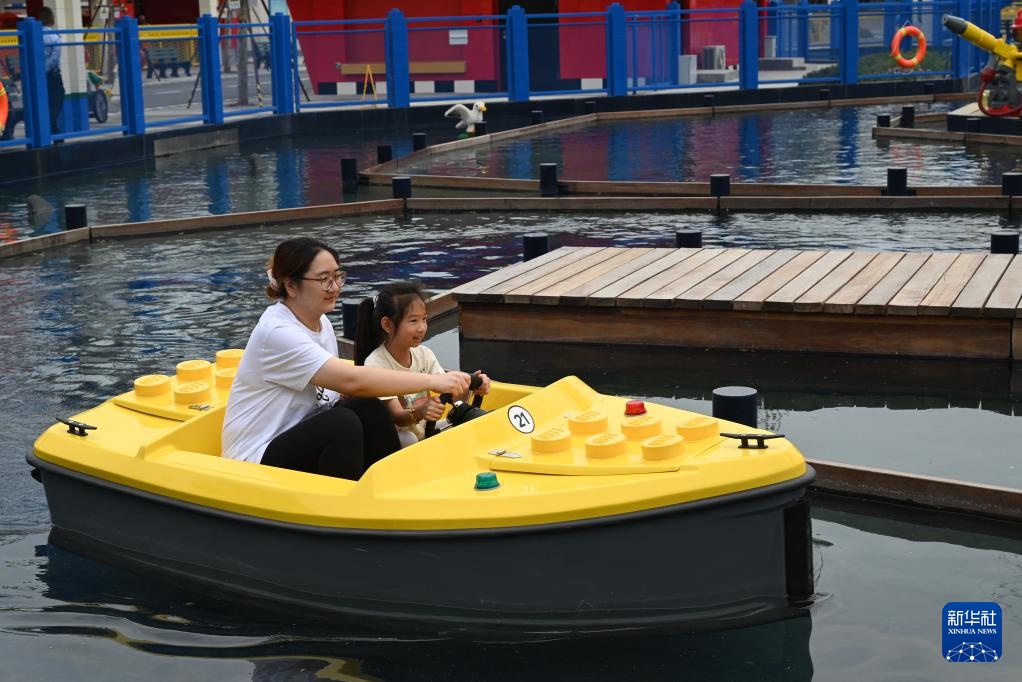 5月31日,游客体验上海乐高乐园项目“摩托艇追逐”。