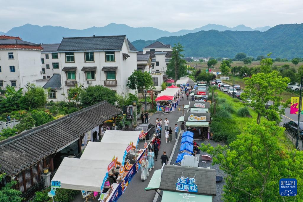 这是建德市下涯镇之江村的动漫市集(5月31日摄,无人机照片)。