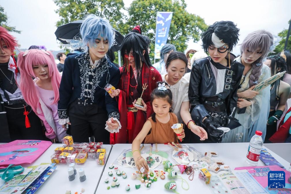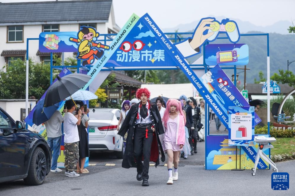 5月31日,人们参加建德市下涯镇之江村的动漫市集。