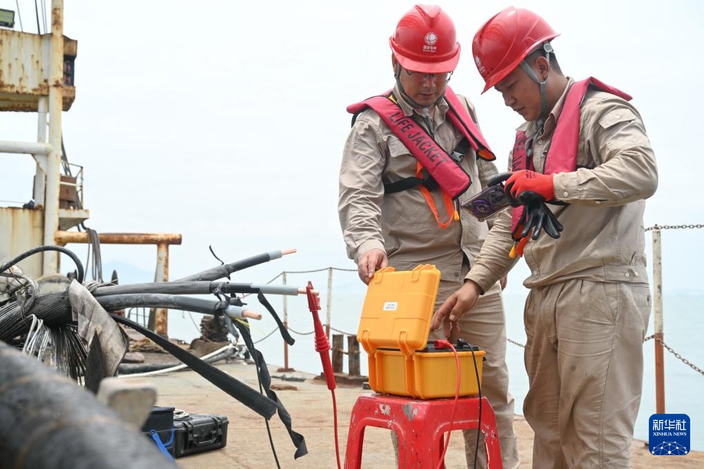 6月1日,抢修人员在现场对故障海缆进行检测。