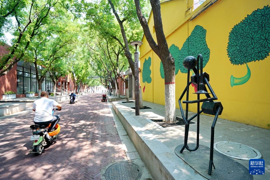 河北省武强县周窝音乐小镇内的音乐主题雕塑(5月28日摄)。