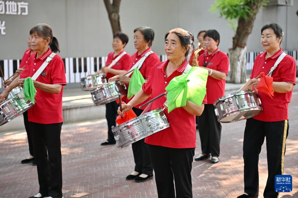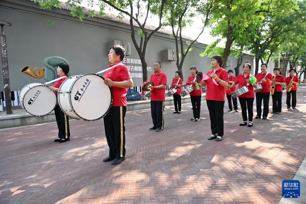 5月28日,村民在周窝音乐小镇内演奏乐曲。