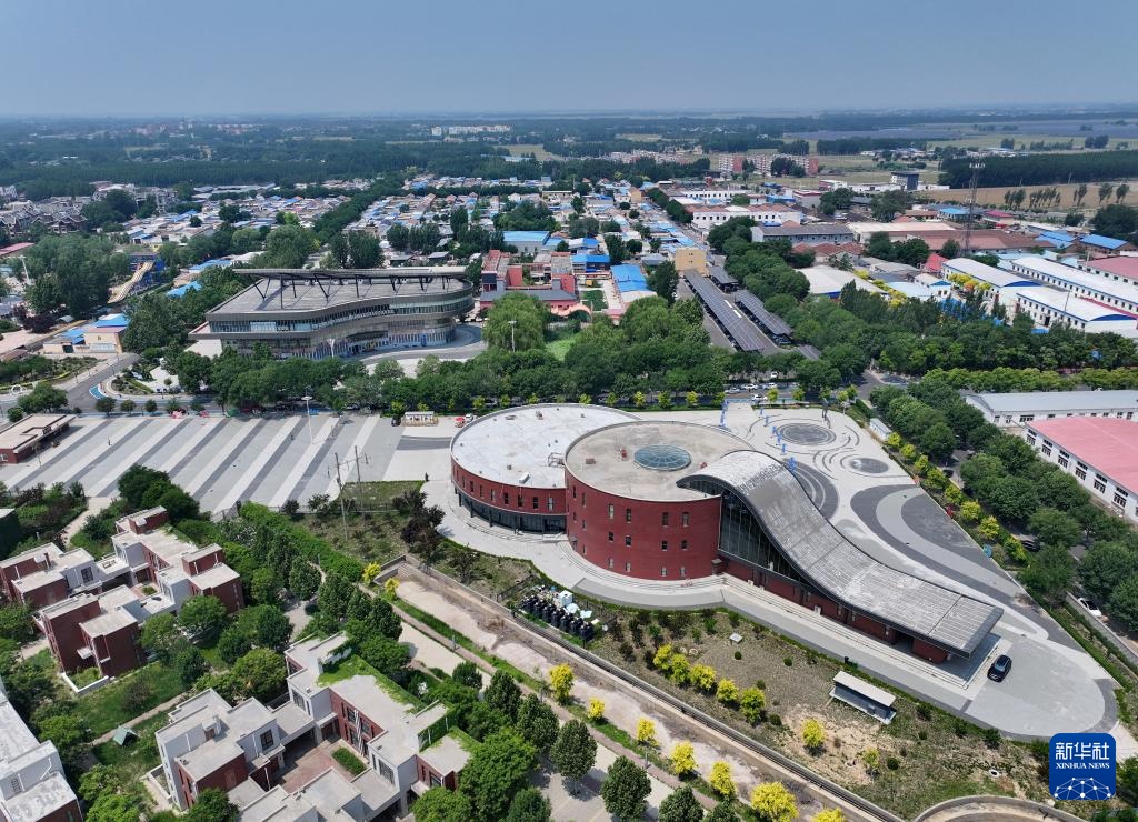 河北省武强县周窝音乐小镇内乐器造型的建筑(5月28日摄,无人机照片)。