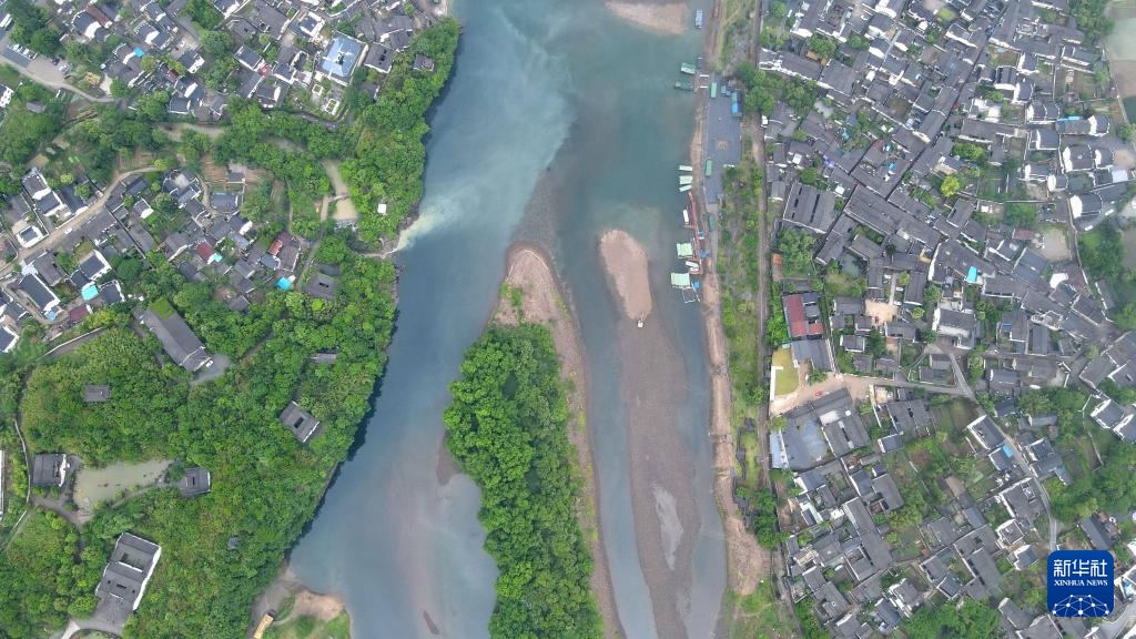 5月16日在安徽省泾县拍摄的雨中桃花潭景色(无人机照片)。