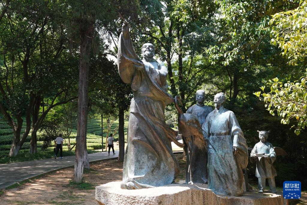 5月14日在安徽省宣城市敬亭山拍摄的李白雕像。