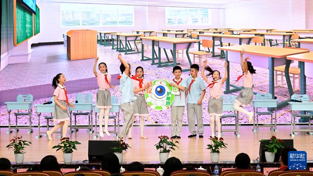 6月3日,北京市海淀区实验小学学生表演情景剧《眼睛保卫战》。