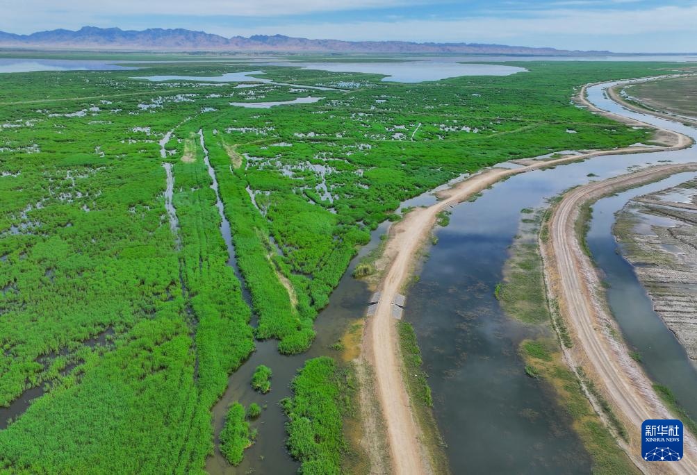 这是6月4日拍摄的乌梁素海景色(无人机照片)。